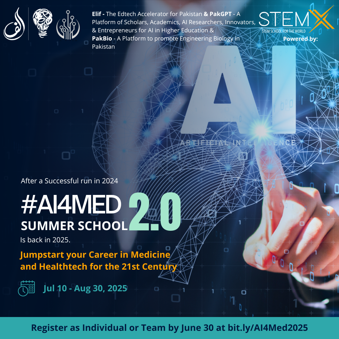 The Summer School on Data and AI in Medicine (#AI4Med) seeks to build the capacity of young professionals – young doctors and professionals, medical and computer science students, as well as a select set of others – to develop a thorough understanding of health datasets, their usage, as well as tools, techniques, challenges, and opportunities in the use of health data in Pakistan. The nature and essence of the Summer School is practical and hands-on with only enough theory to make practice accessible and meaningful as well as mentoring and guidance of senior researchers and seasoned practitioners to enable young professionals and learners to explore, develop capabilities, and make deeper connections with the field.